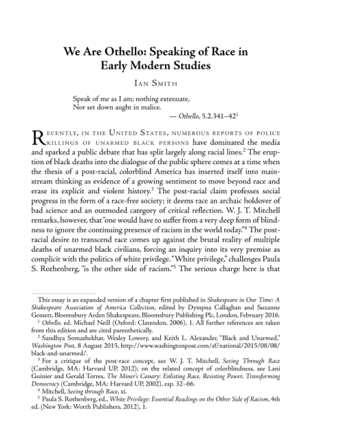 See also Ian Smith's Shakespeare Quarterly article "We are Othello," for more on Romantic construction of white normativity, particularly in relation to Hamlet. #ShakeRacepic.twitter.com/oeFTkO8xPW