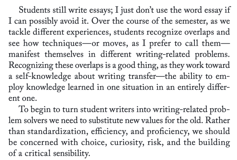 Really good pedagogy from @biblioracle on what students need to know to be able to write and be invested in their writing. From "Why They Can't Write." #AcademicTwitterpic.twitter.com/rT5bscV6qR