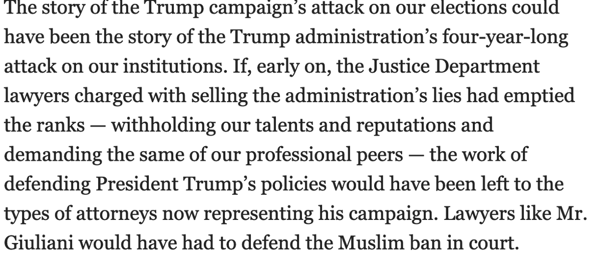 Former DOJ lawyer admits complicity in Trump's xenophobic policies, allowing the administration the veneer of respectability. https://www.nytimes.com/2020/12/20/opinion/trump-justice-department-lawyer.html?smid=tw-share …pic.twitter.com/9GfZxKMzTj