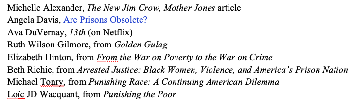 I’ll share the readings and videos. It’s a primer to the important issues around mass incarceration.