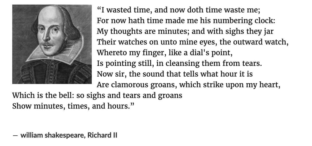 It's such a good play for meditations on time. Cause, also this one: "O, call back yesterday, bid time return"