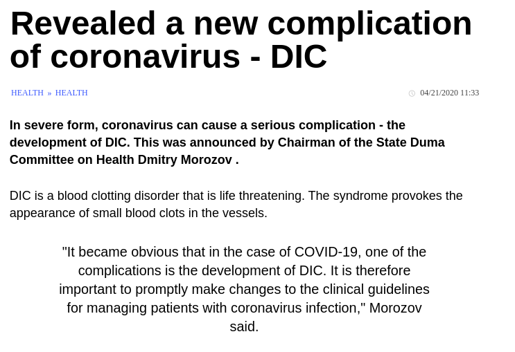 covid19 causes multi-organ diseases Clotting problems have been observed frequently, so there are therapeutic protocols with heparinhttps://www.sciencemag.org/news/2020/04/how-does-coronavirus-kill-clinicians-trace-ferocious-rampage-through-body-brain-toes# …