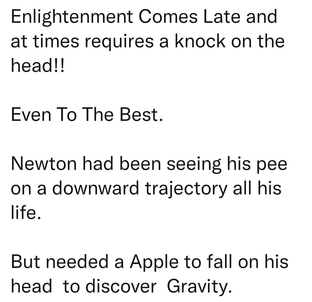 Fallen apple shook his midbrain and opened his third eyehttps://twitter.com/HarbirSinghSuri/status/1449976652100870145 …