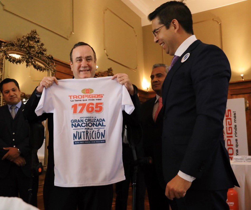 Agradezco a @tropigas1765 por ser la primera empresa que se une a la @GranCruzadaGT por la nutrición. Donará Q1.00 por cada cilindro vendido para el Fondo contra el Hambre y la Desnutrición, las vidas de miles de niños se verán muy beneficiadas con este programa.pic.twitter.com/7PtK9vD2PR