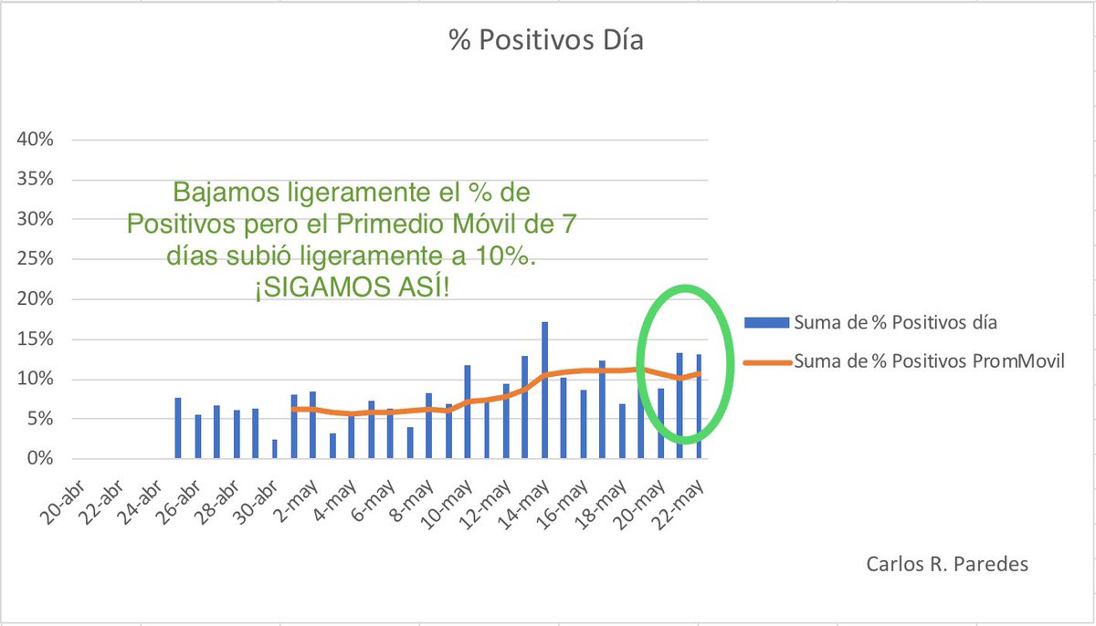 Felicitaciones! Pero aún así es recomendable monitorear y comunicar los indicadores - % Positivos diario - % Ocupación de la capacidad de hospitales (mejor si es por área) El % positivos indica que el contagio está controladopic.twitter.com/kVmZM9JQNw