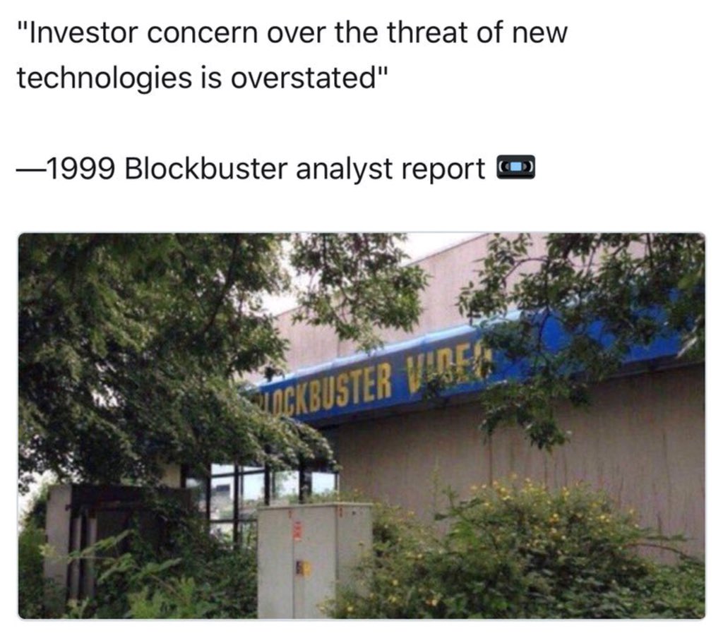 Ah - but if blockbuster had adopted the new tech they would still be in business! That’s the key here.