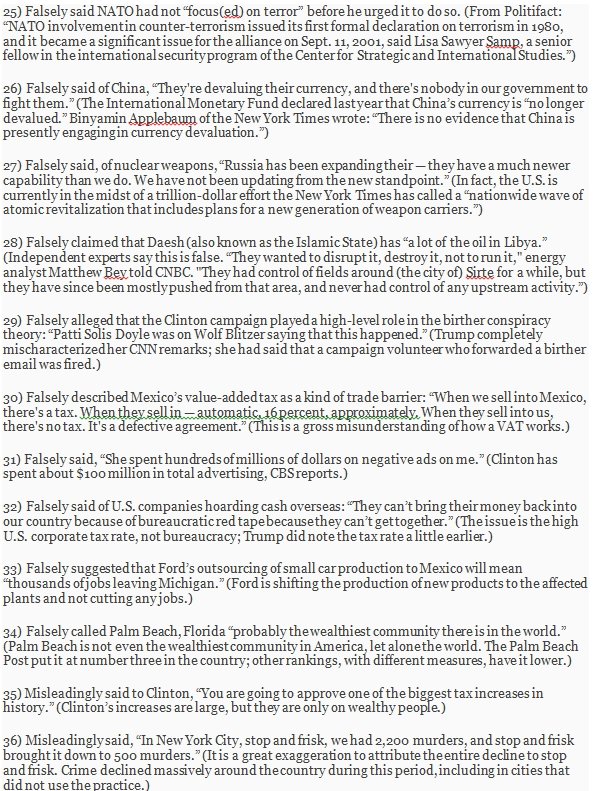 It takes three pages in size 10.5 font to describe Trump's 34 false claims from the debate.