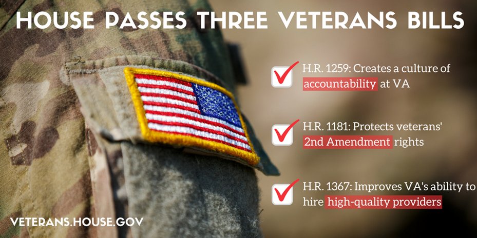 This week, the House passed 3 important @HouseVetAffairs bills that I was proud to support. I will continue to fight for our vets. #veteranspic.twitter.com/WTl2Vf6d8o