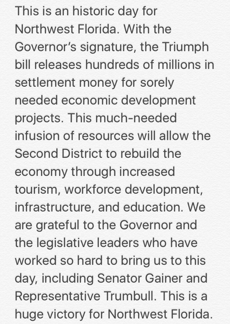 U forgot to thank the lawyers & Sen. Nelson(who worked at the federal level).