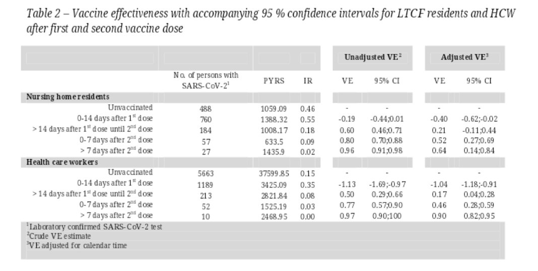 The table from the original Danish cohort study: look at the VE (vaccine efficacy) from days 0-14 https://www.medrxiv.org/content/10.1101/2021.03.08.21252200v1 …pic.twitter.com/kSq1Wqg8f9