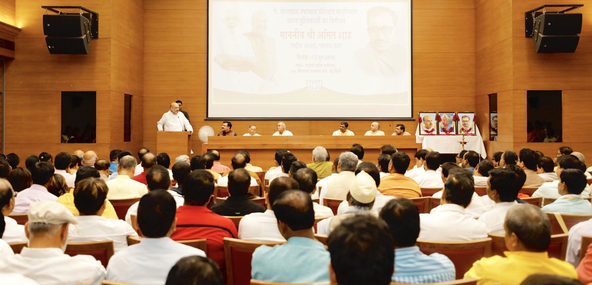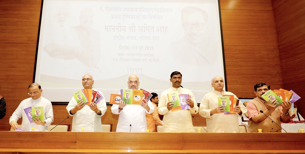 In pictures : BJP President Shri @AmitShah releasing books on Pt. Deendayal Upadhyay Prashikshan Mahabhiyan at BJP HQ in New Delhi.pic.twitter.com/HSxXwF2lVc