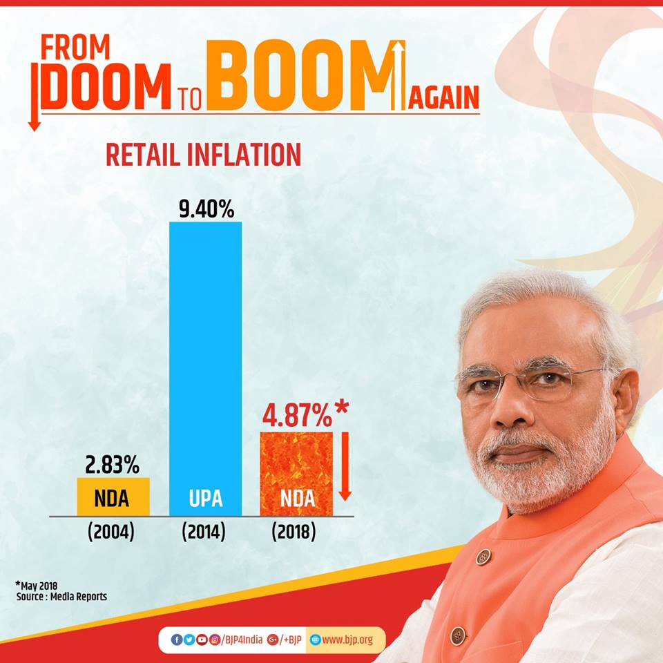 From doom to boom again : Modi government's continuous efforts have brought inflation down hugely.pic.twitter.com/cRVHFdTejg