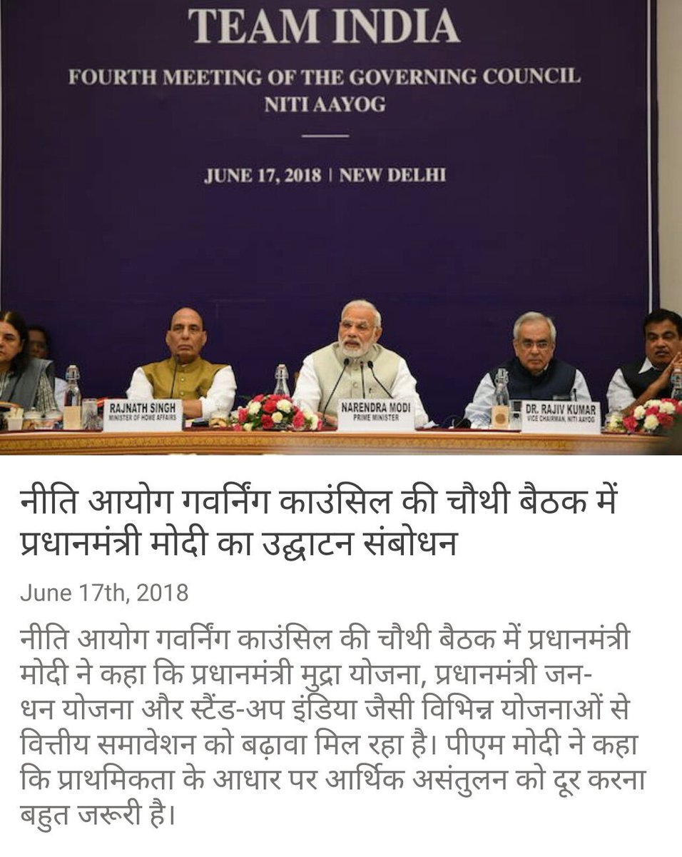 नीति आयोग गवर्निंग काउंसिल की चौथी बैठक में प्रधानमंत्री मोदी का उद्घाटन संबोधन http://nm-4.com/wyj6 via NaMo Apppic.twitter.com/RHKm9MI7cq