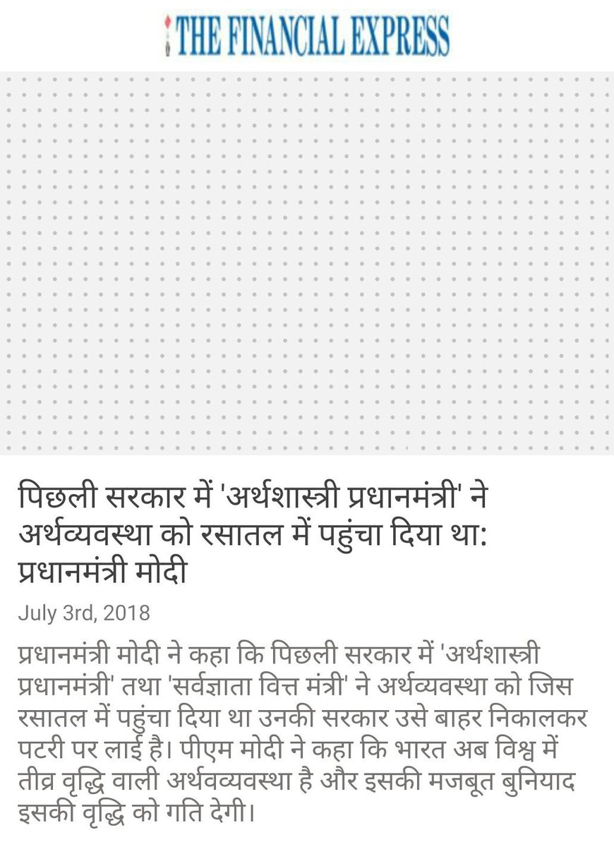पिछली सरकार में 'अर्थशास्त्री प्रधानमंत्री' ने अर्थव्यवस्था को रसातल में पहुंचा दिया था: प्रधानमंत्री मोदी https://www.financialexpress.com/india-news/pm-narendra-modi-says-steered-economy-out-of-decay-left-by-economist-pm-know-it-all-fm/1228782/ … via NaMo Apppic.twitter.com/2J1hSjiWaw
