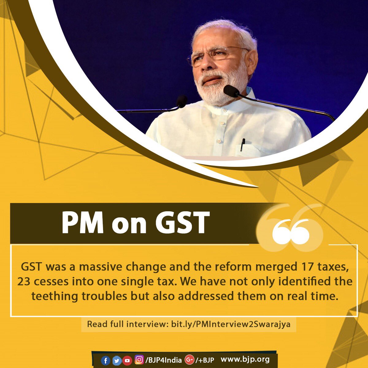 “Can we have ‘Milk and Mercedes’ at the same tax rate?”, PM @narendramodi talks at length about the historical tax reform, GST and its phenomenal success in one year. Read his full interview to @SwarajyaMag at http://bit.ly/PMInterview2Swarajya …pic.twitter.com/ongdu1kWIz
