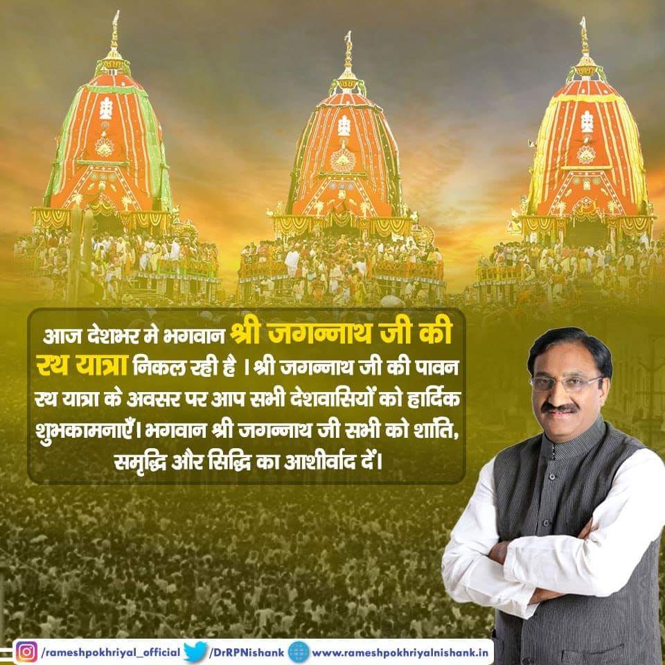 आज देशभर मे भगवान श्री जगन्नाथ जी की रथ यात्रा निकल रही है । भगवान श्री जगन्नाथ जी आप सभी की मनोकामना पूर्ण करें। आप सभी देशवासियों को पवित्र रथ यात्रा की हार्दिक शुभकामनाएं।