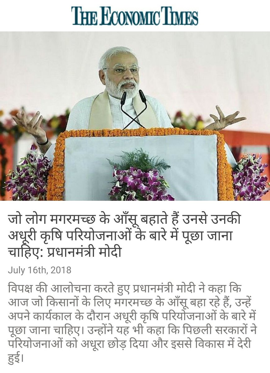 जो लोग मगरमच्छ के आँसू बहाते हैं उनसे उनकी अधूरी कृषि परियोजनाओं के बारे में पूछा जाना चाहिए: प्रधानमंत्री मोदी https://economictimes.indiatimes.com/news/politics-and-nation/those-shedding-crocodile-tears-should-be-asked-about-their-incomplete-farm-projects-narendra-modi/articleshow/64995123.cms … via NaMo Apppic.twitter.com/9QXCnvAEdP