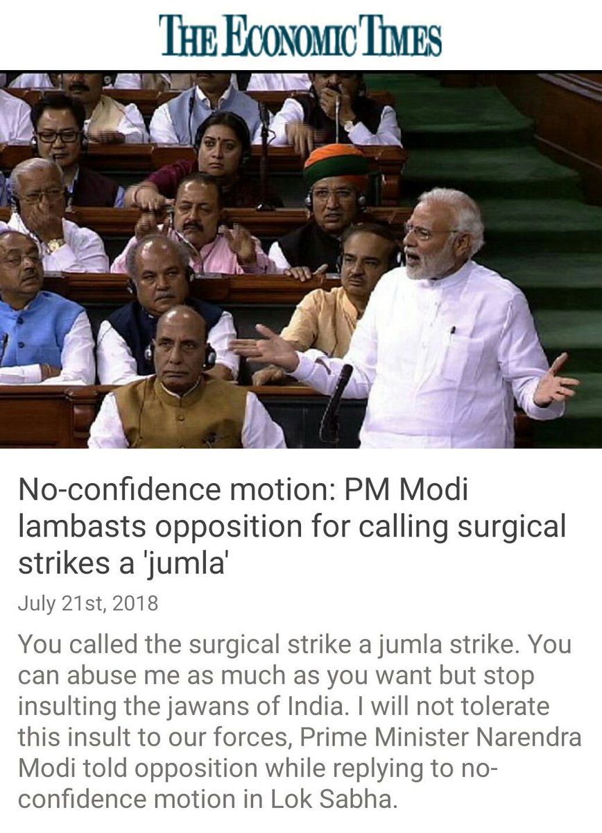 No-confidence motion: PM Modi lambasts opposition for calling surgical strikes a 'jumla' https://economictimes.indiatimes.com/news/politics-and-nation/no-confidence-motion-pm-modi-lambasts-opposition-for-calling-surgical-strikes-a-jumla/videoshow/65074519.cms … via NaMo Apppic.twitter.com/xeTX8vN8Jq