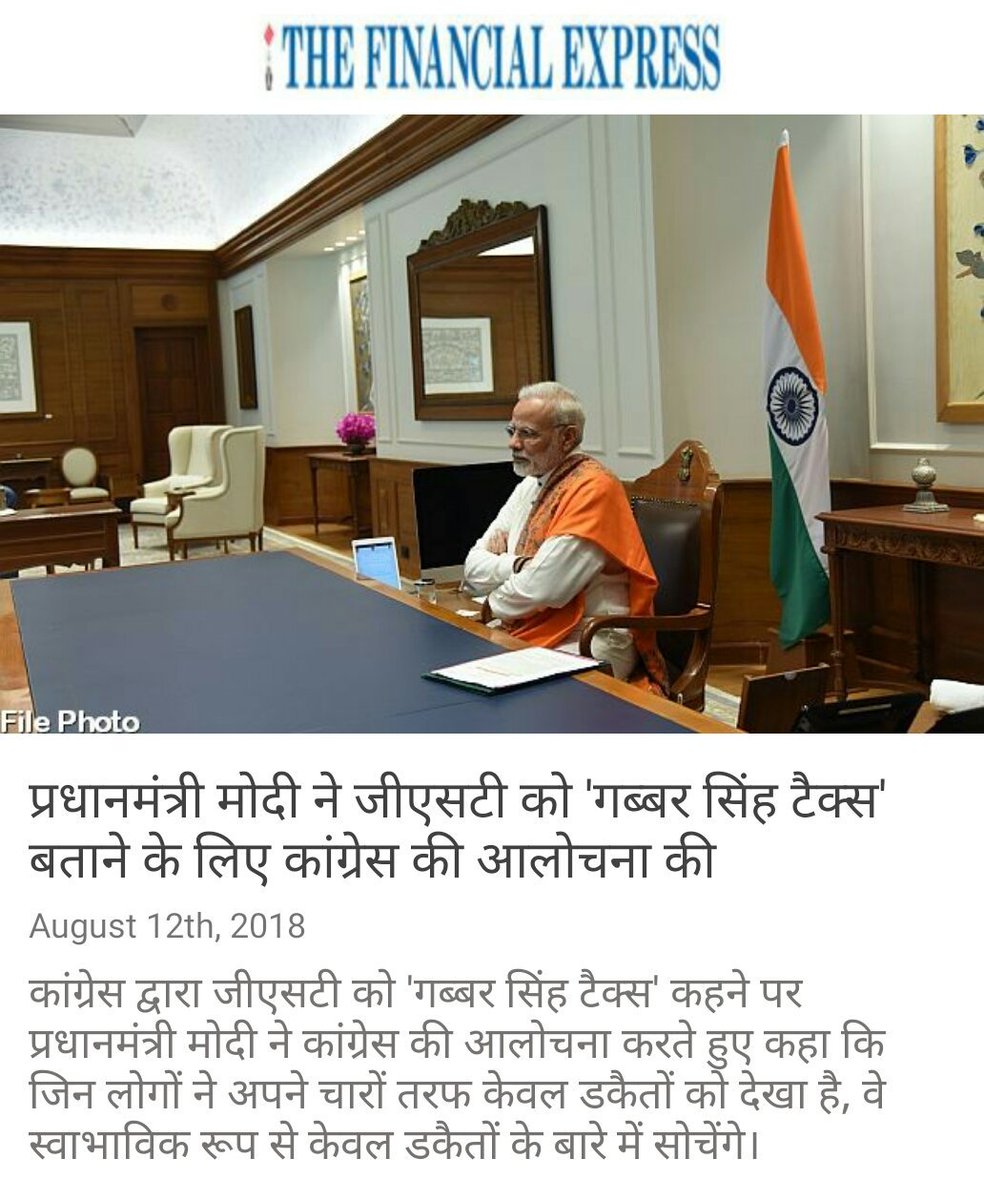 प्रधानमंत्री मोदी ने जीएसटी को 'गब्बर सिंह टैक्स' बताने के लिए कांग्रेस की आलोचना की https://www.financialexpress.com/economy/pm-narendra-modi-hits-back-at-congress-for-gabbar-singh-tax-analogy/1278076/ … via NaMo Apppic.twitter.com/B8TFtoe7tL