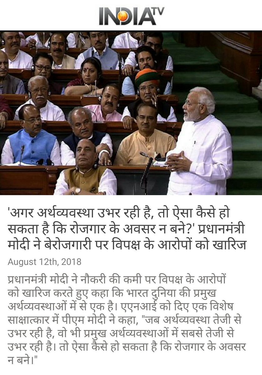'अगर अर्थव्यवस्था उभर रही है, तो ऐसा कैसे हो सकता है कि रोजगार के अवसर न बने?' प्रधानमंत्री मोदी ने बेरोजगारी पर विपक्ष के आरोपों को खारिज किया https://www.indiatvnews.com/news/india-if-economy-is-growing-how-can-job-market-not-expand-pm-modi-rebuts-opposition-allegations-on-unemployment-457700 … via NaMo Apppic.twitter.com/W1HsnXSwP0