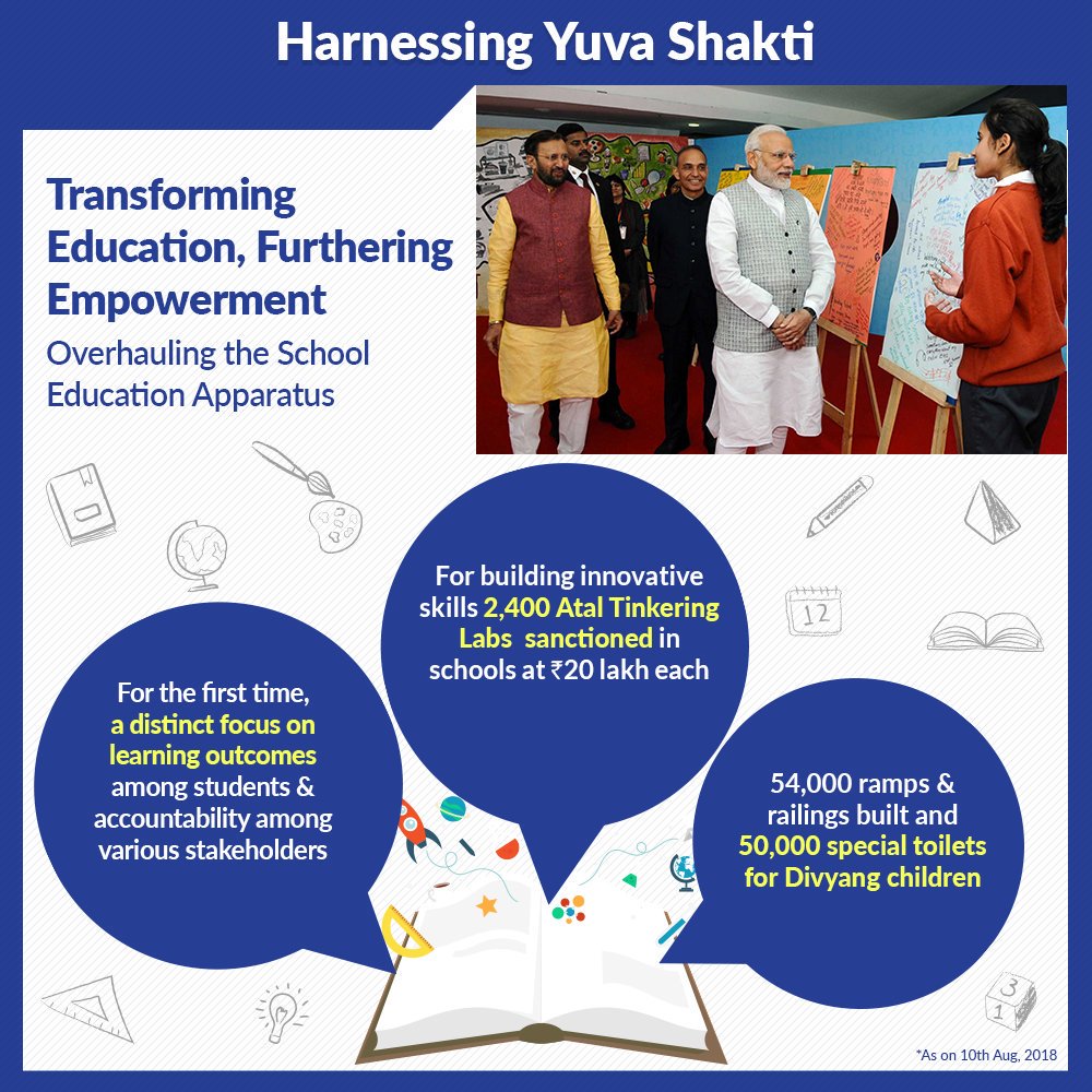 From encouraging the spirit of scientific inquiry through Atal Tinkering Labs to making education accessible to Divyangs, we are transforming the education sector of the nation.pic.twitter.com/ftMovNSRBf