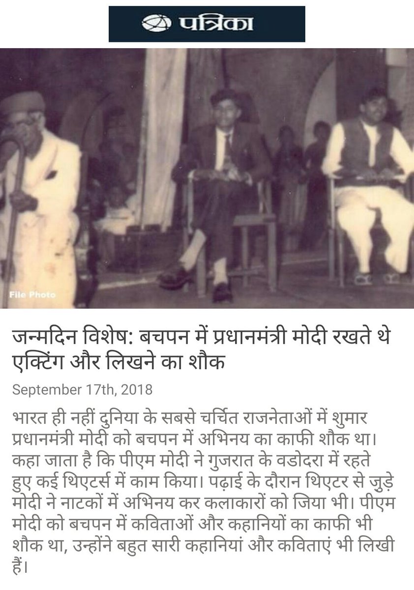 जन्मदिन विशेष: बचपन में प्रधानमंत्री मोदी रखते थे एक्टिंग और लिखने का शौक https://www.patrika.com/miscellenous-india/birthday-special-pm-modi-childhood-hobby-was-acting-and-writing-1-3420077/?ufrm=heod … via NaMo Apppic.twitter.com/VTzKTOE8Ka