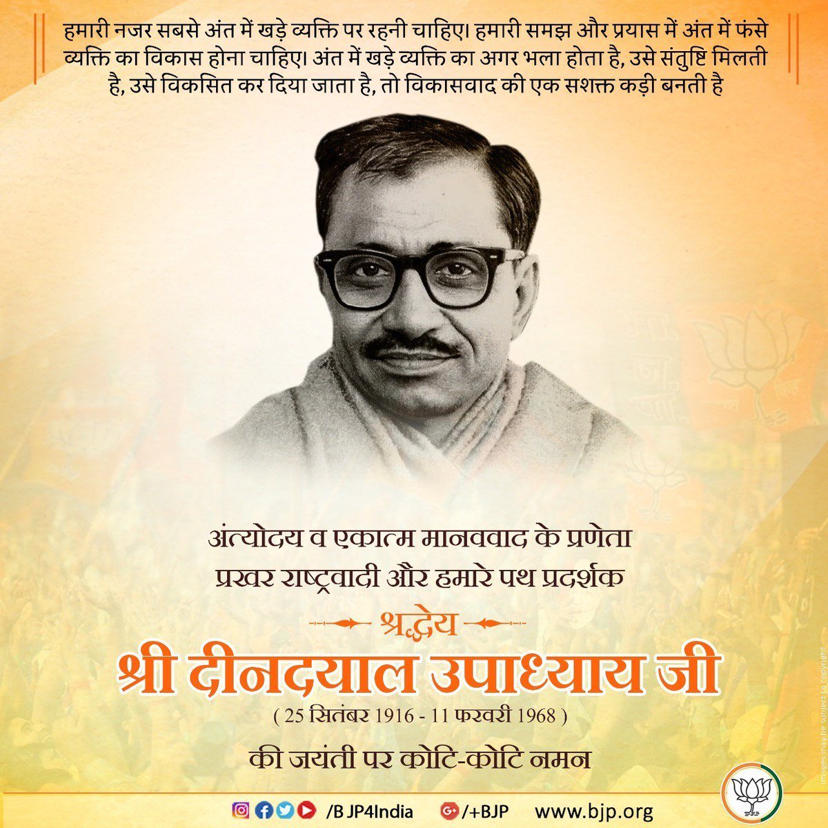 पंडित दीनदयाल उपाध्याय जी की जन्म-जयंती पर उन्हें कोटि-कोटि नमन ,