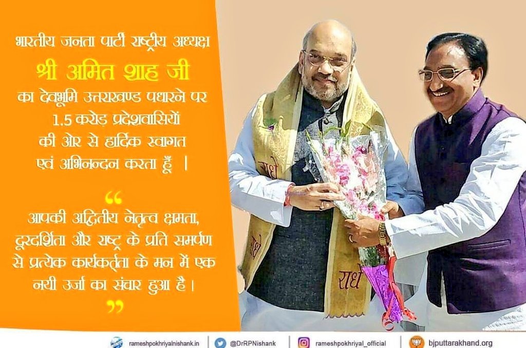भारतीय जनता पार्टी राष्ट्रीय अध्यक्ष श्री अमित शाह जी का देवभूमि उत्तराखण्ड पधारने देवभूमि वासियों की ओर से हार्दिक स्वागत एवं अभिनन्दन करता हूँ |pic.twitter.com/0CMHMUq5GJ