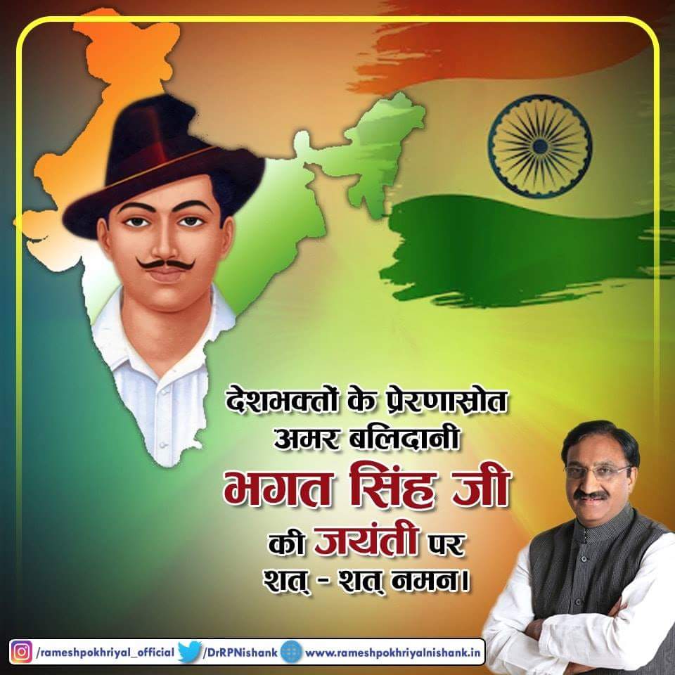 देशभक्तों के प्रेरणास्रोत अमर बलिदानी भगत सिंह जी की जयंती पर शत् - शत् नमन। #BhagatSingh #ShaheedBhagatSinghpic.twitter.com/A5VL0KTvie