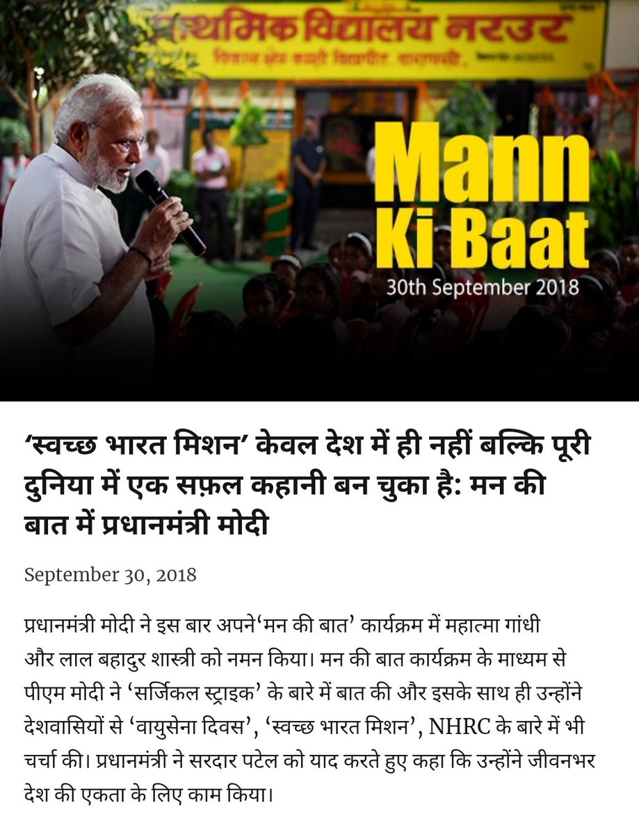‘स्वच्छ भारत मिशन’ केवल देश में ही नहीं बल्कि पूरी दुनिया में एक सफ़ल कहानी बन चुका है: मन की बात में प्रधानमंत्री मोदी http://nm-4.com/m2y6 via NaMo Apppic.twitter.com/yGpx0tkd52
