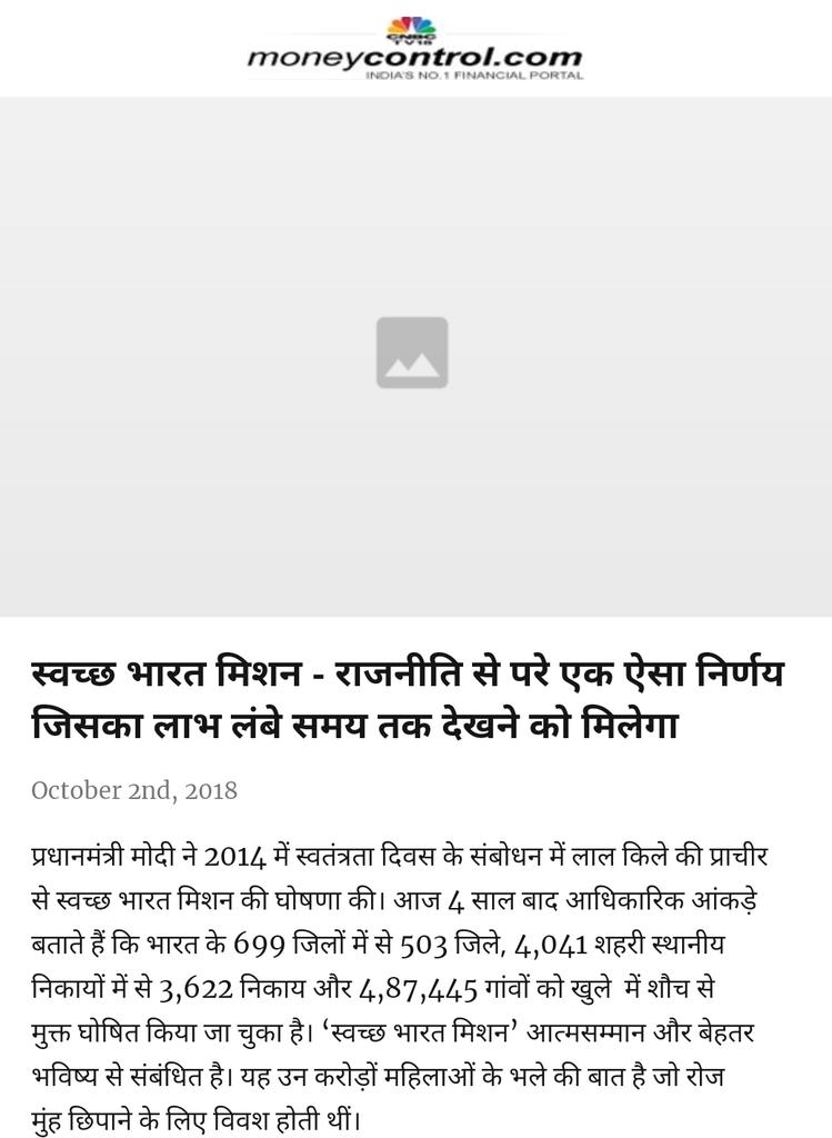 स्वच्छ भारत मिशन - राजनीति से परे एक ऐसा निर्णय जिसका लाभ लंबे समय तक देखने को मिलेगा https://www.moneycontrol.com/news/politics/opinion-swachh-bharat-mission-an-apolitical-move-with-rich-political-dividends-in-long-run-3003521.html … via NaMo Apppic.twitter.com/TiYuXW1wYp