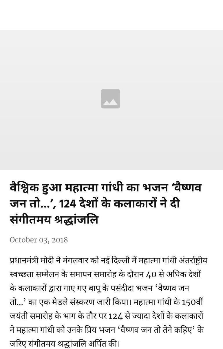वैश्विक हुआ महात्मा गांधी का भजन ‘वैष्णव जन तो...’, 124 देशों के कलाकारों ने दी संगीतमय श्रद्धांजलि https://www.hindustantimes.com/india-news/pm-narendra-modi-launches-medley-version-of-bapu-s-favourite-bhajan/story-KLRnv4MQ69boh4fyTbPXDI.html … via NaMo Apppic.twitter.com/7yVKqw8DMz
