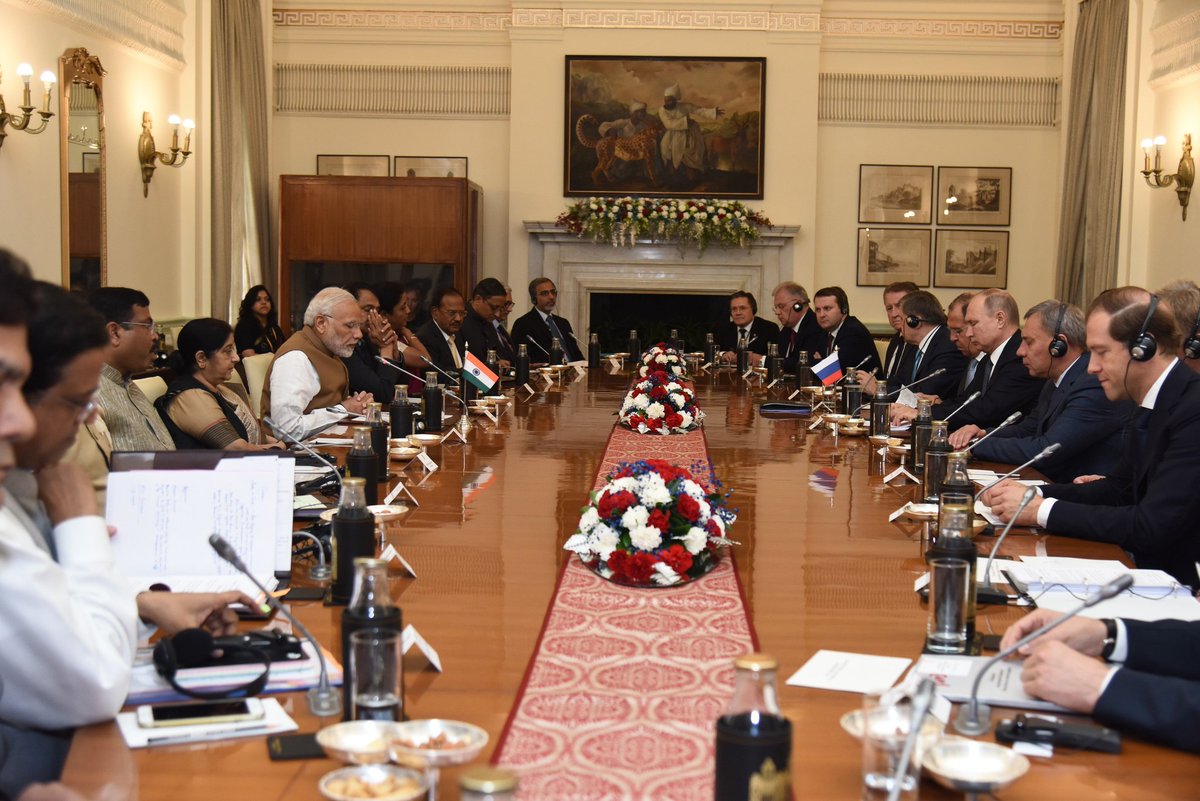 PM @narendramodi holds delegation level talks with President of Russia Vladimir Putin in Hyderabad House, New Delhi. #PutininIndiapic.twitter.com/mXwkEuMEN2