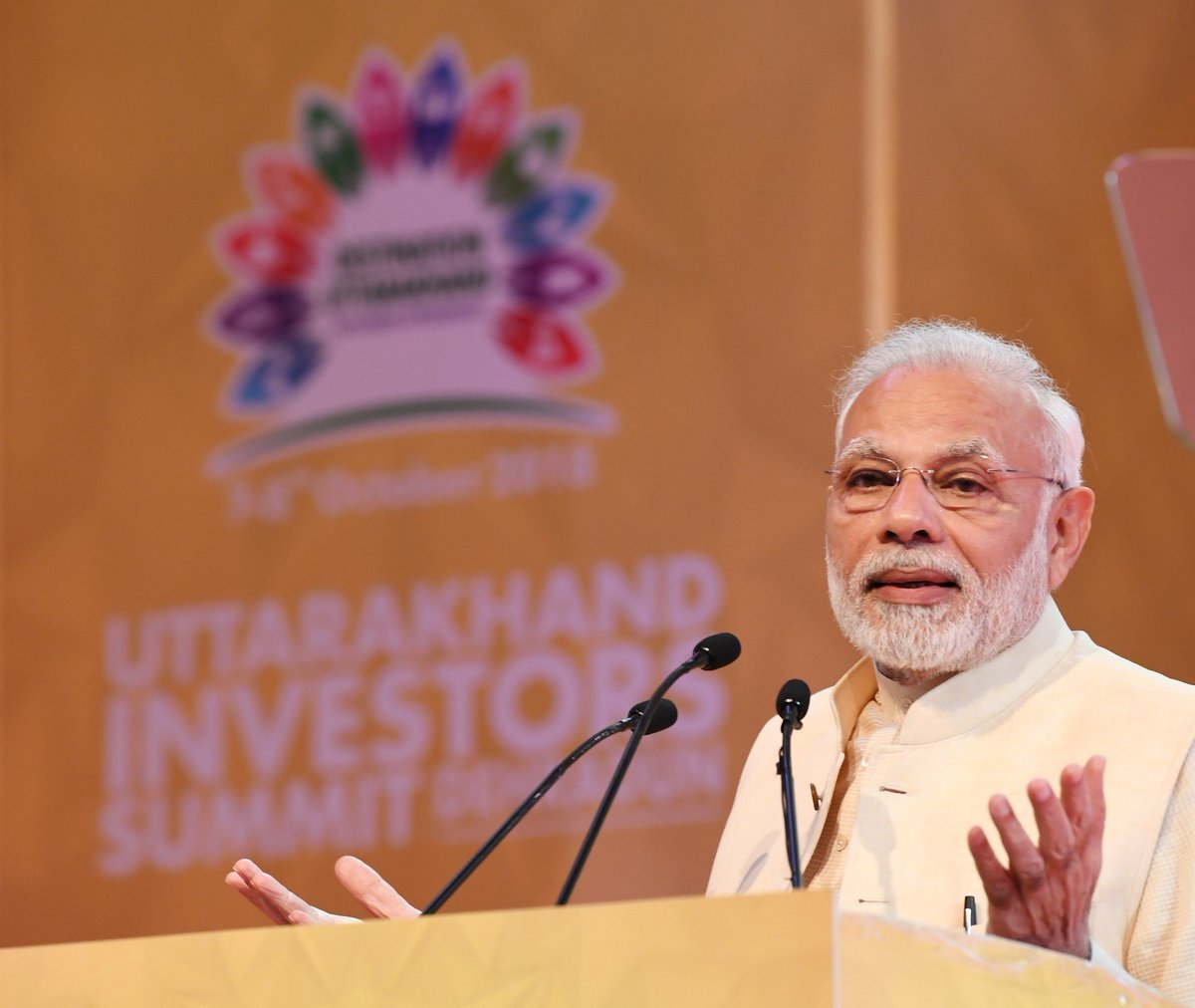 औद्योगिक क्षेत्र में नई क्रांति की ओर अग्रसर उत्तराखंड में आज निवेशक सम्मेलन का उद्घाटन प्रधानमंत्री श्री @narendramodi जी द्वारा किया गया । यशस्वी प्रधानमंत्री श्री @narendramodi जी के नेतृत्व में उत्तराखंड में 10 नई नीतियां बनाई गई है । #DestinationUttarakhandpic.twitter.com/B3FvE0vwAK