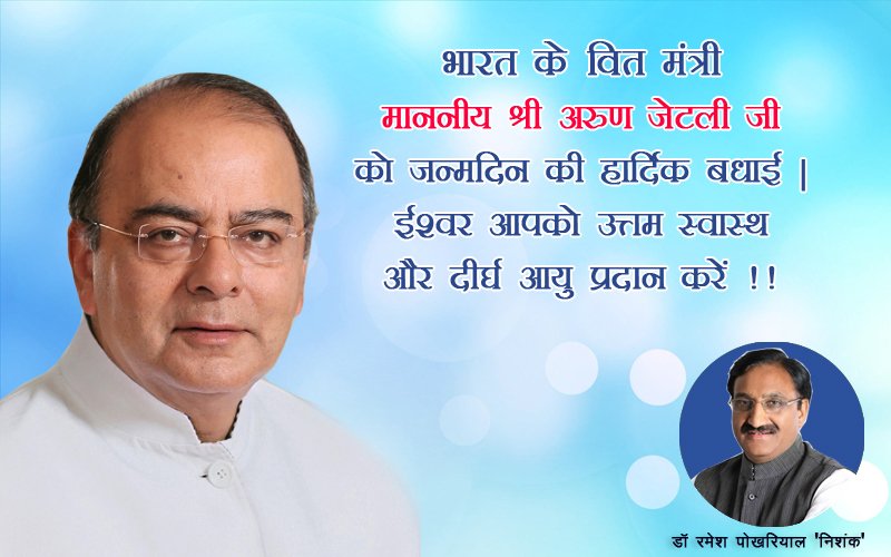 माननीय श्री @arunjaitley को जन्म दिन की हार्दिक बधाई | ईश्वर आपको उत्तम स्वास्थ और दीर्घ आयु प्रदान करें |pic.twitter.com/B8KPpXpQiU