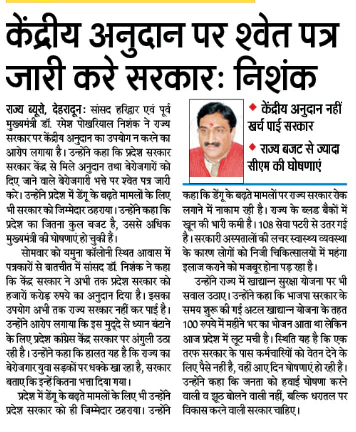 केंद्रीय अनुदान पर श्वेत पत्र जारी करे उत्तराखण्ड सरकार ।pic.twitter.com/0TaSHyBBUr