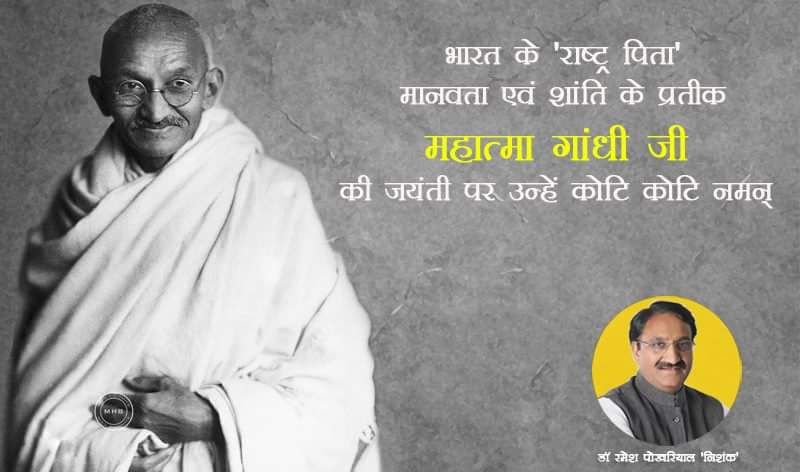 भारत के 'राष्ट्र पिता' मानवता एवं शांति के प्रतीक महात्मा गांधी जी की जयंती पर उन्हें कोटि कोटि नमन् |pic.twitter.com/OFqmoy5zdq