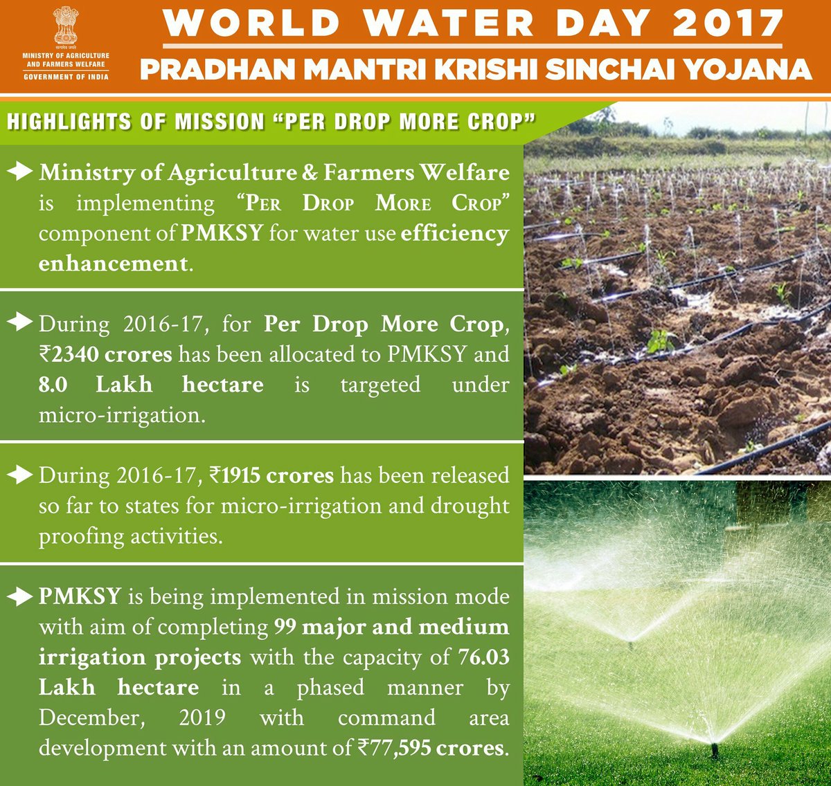 Greetings on #worldwaterday; urge #farmers to use #water efficiently and endorse micro irrigation system.pic.twitter.com/8202ZNaPHF