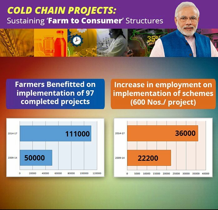 Cold chains provide greater employment with larger number of farmers benefiting directly #TransformingIndia https://transformingindia.mygov.in/all-infographics/ …pic.twitter.com/U64CVUJLBe