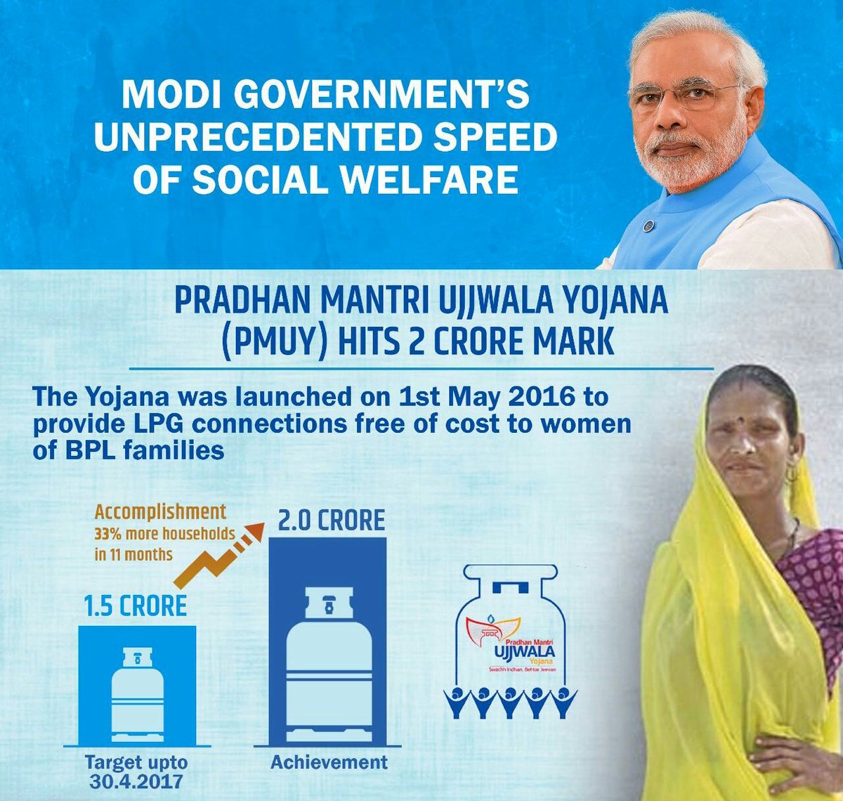 Modi government is dedicated to transform the lives of poor and women : Free LPG connections under #PMUjjwalaYojna cross 2 crore mark.pic.twitter.com/QshPSGf7CR