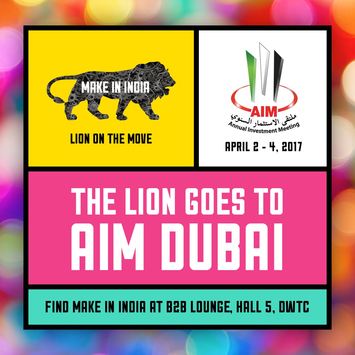 The Lion is on the move! #MakeInIndia makes its way to #AIM2017. Watch our timeline for event updates straight from the action.pic.twitter.com/E5rsNjXEoS