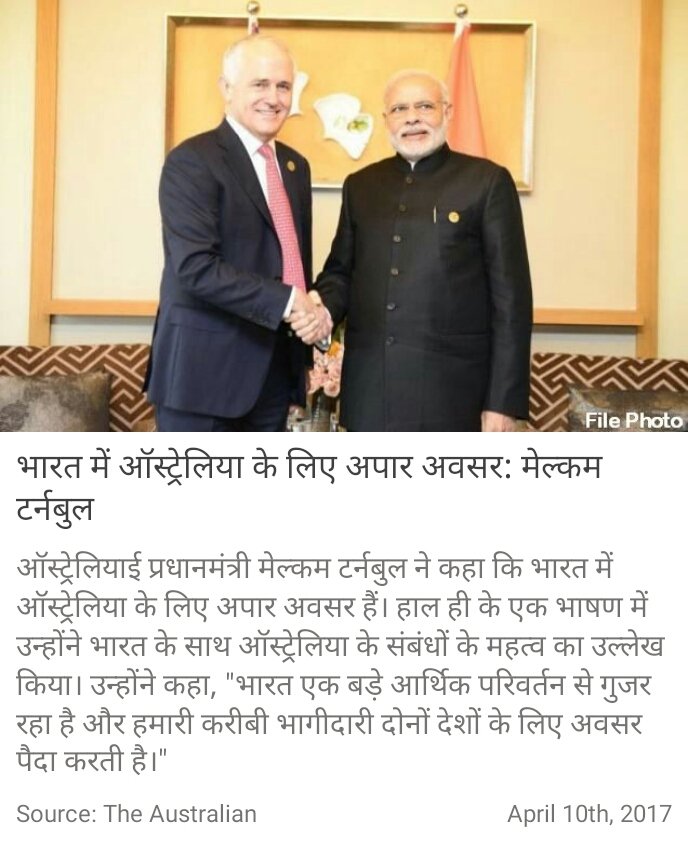भारत में ऑस्ट्रेलिया के लिए अपार अवसर: मेल्कम टर्नबुल http://www.theaustralian.com.au/national-affairs/foreign-affairs/opportunity-awaits-in-india-says-malcolm-turnbull/news-story/f0f678f5e83d16d594b1a273c0cb42da … via NMApppic.twitter.com/qUV0nSQYuM