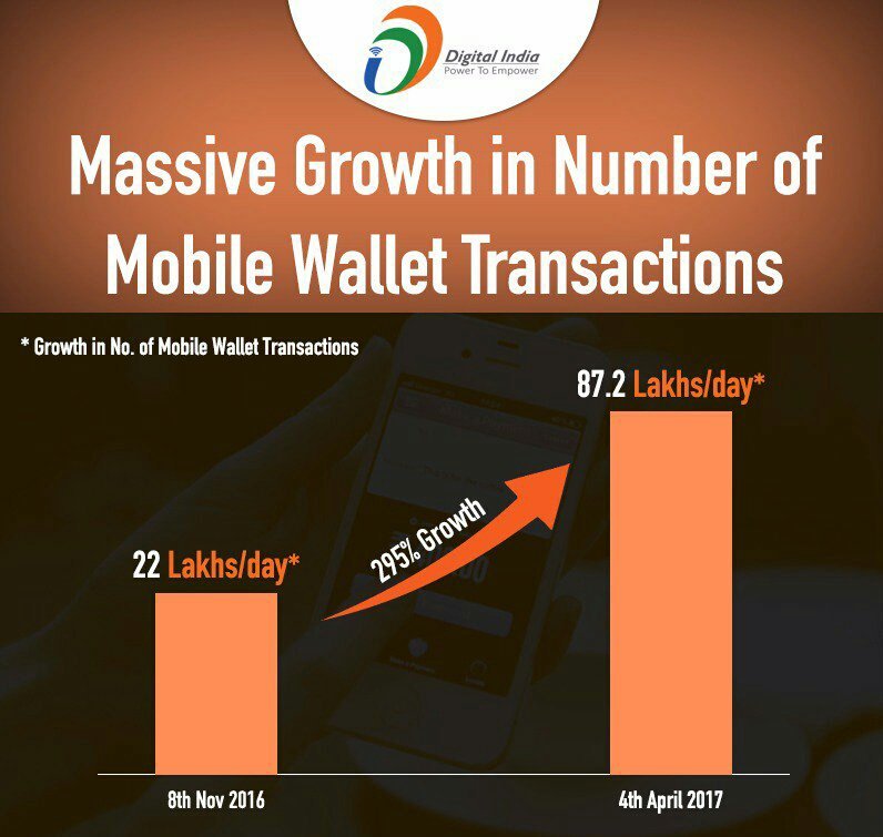 Usage of Mobile Wallet transactions have seen an enormous growth. #DigitalIndiapic.twitter.com/tQ3Qk72MHB