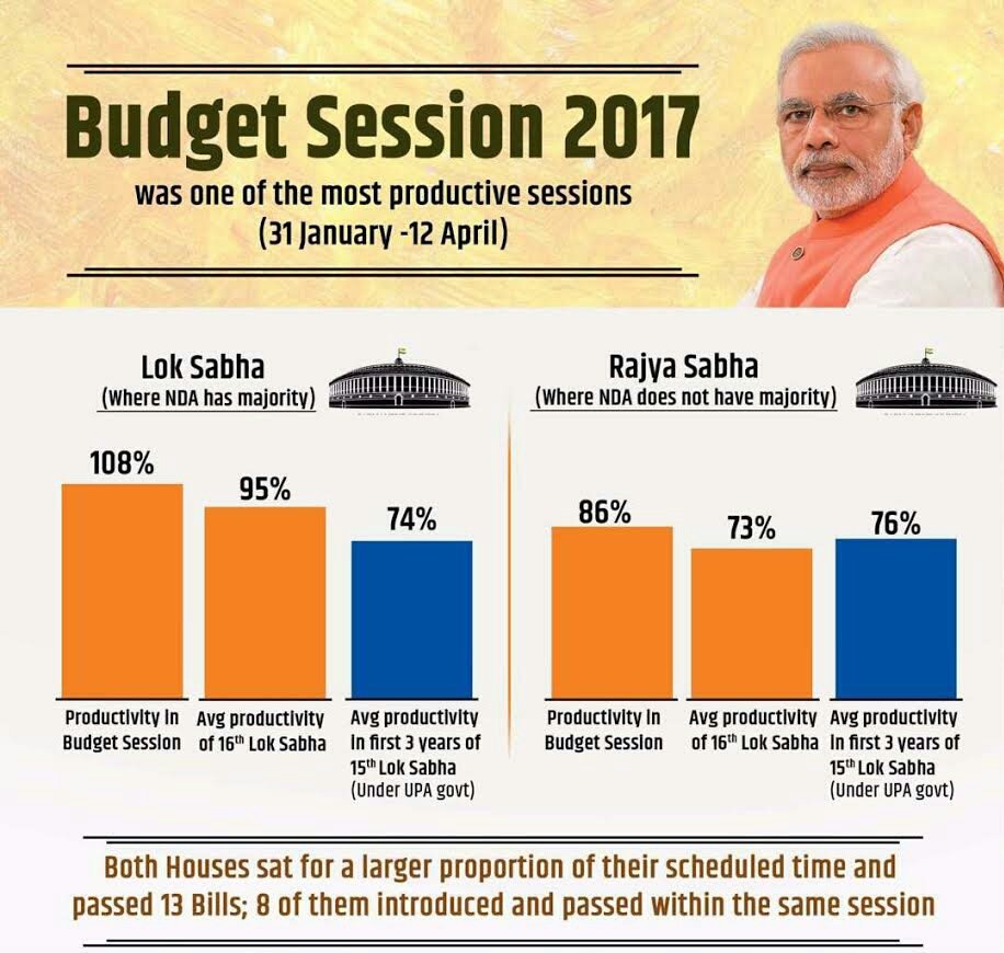 Budget session 2017 was one of the most productive sessions of 16th Lok Sabha, recording 108% productivity and passing 18 bills.pic.twitter.com/vwzYv5IzBM