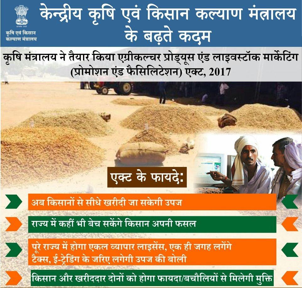 कृषि एवं किसान कल्याण मंत्रालय ने तैयार किया एग्रीकल्चर प्रोड्यूस एंड लाइवस्टॉक मार्केटिंग (#APLM) एक्ट, 2017