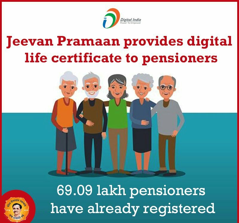 Now getting pension becomes easy through Jeevan Pramaan. Pensioners get their life certificates at their doorsteps. #DigitalIndiapic.twitter.com/lr7GSShyV8