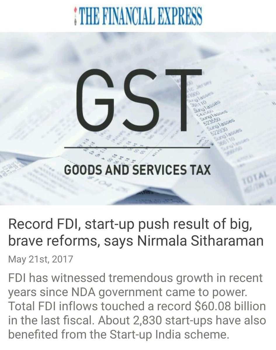 Record FDI, start-up push result of big, brave reforms, says Nirmala Sitharaman http://www.financialexpress.com/economy/record-fdi-start-up-push-result-of-big-brave-reforms-says-nirmala-sitharaman/678247/ … via NMApppic.twitter.com/TxzfJAyYJF