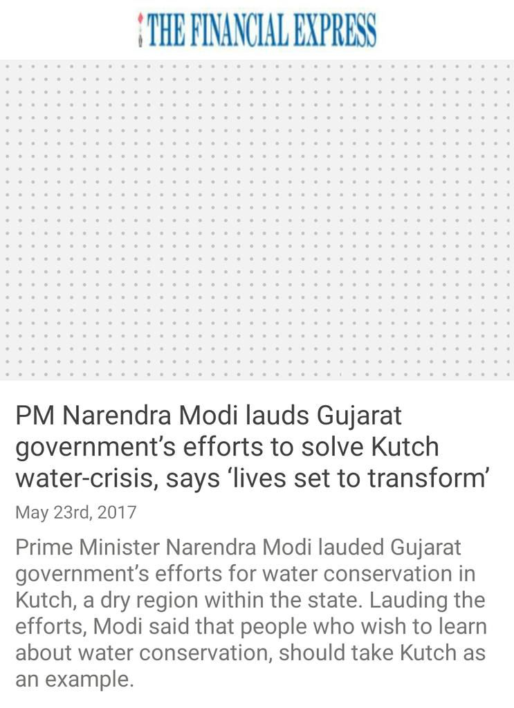 PM Narendra Modi lauds Gujarat government’s efforts to solve Kutch water-crisis, says ‘lives set to transform’ via NMApppic.twitter.com/KnG6fT6dvK