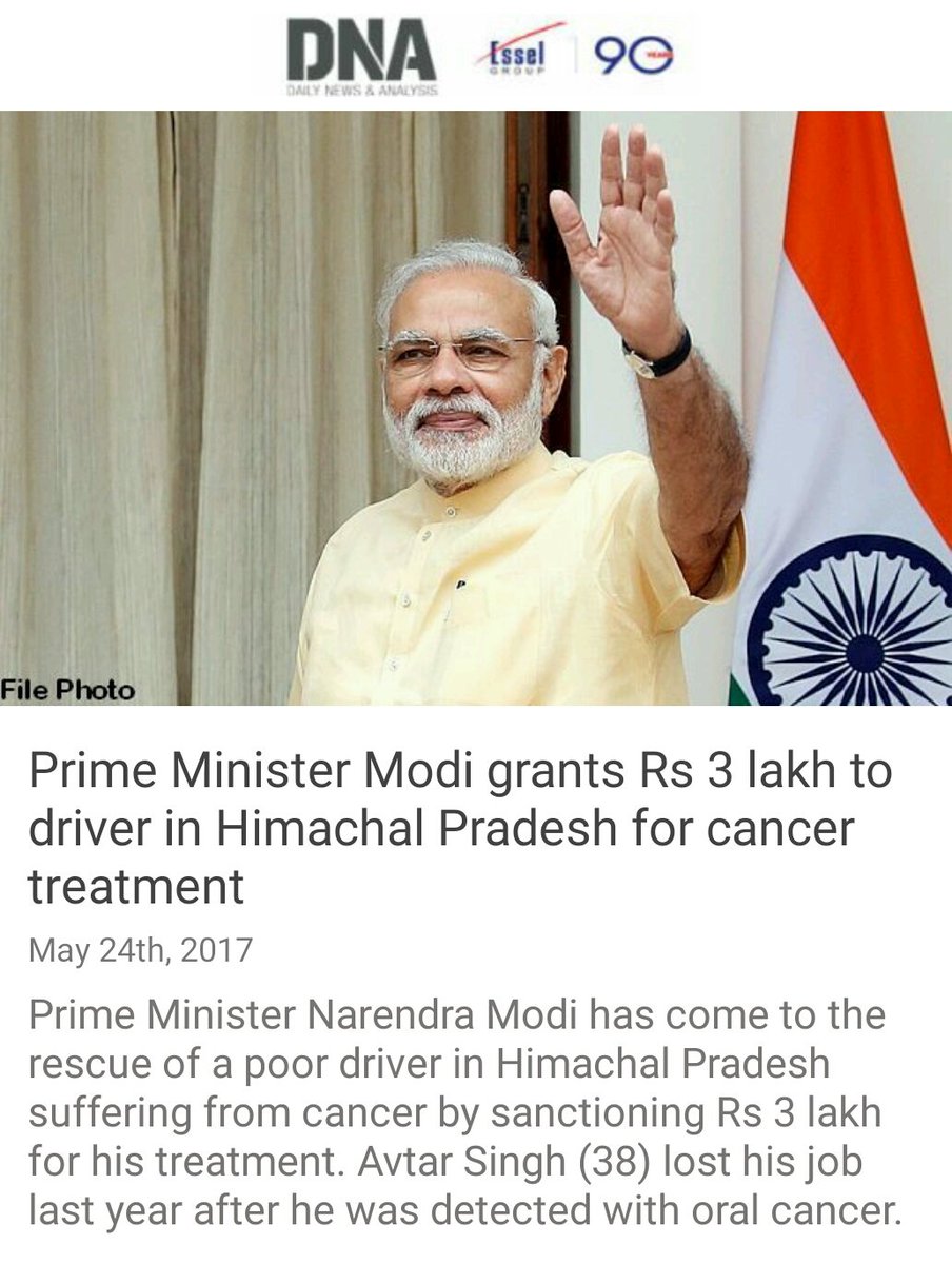 Prime Minister Modi grants Rs 3 lakh to driver in Himachal Pradesh for cancer treatment http://www.dnaindia.com/india/report-pm-grants-rs-3-lakh-to-driver-in-himachal-for-cancer-treatment-2448454 … via NMApppic.twitter.com/tiImQY7LoY