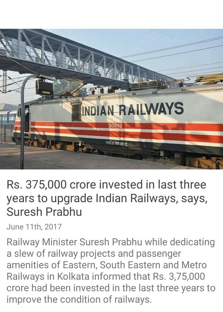 Rs. 375,000 crore invested in last three years to upgrade Indian Railways, says, Suresh Prabhu http://indiablooms.com/ibns_new/news-details/N/31848/rs-375-000-crore-invested-in-last-three-years-to-upgrade-indian-railways-says-suresh-prabhu.html … via NMApppic.twitter.com/Jsss2Rmcrs